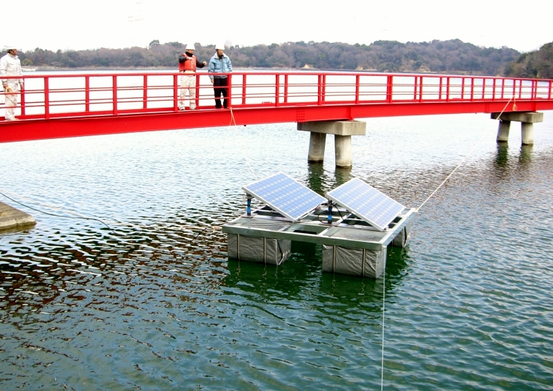 ・ため池下流法面及び水面を利用した太陽光発電実証実験